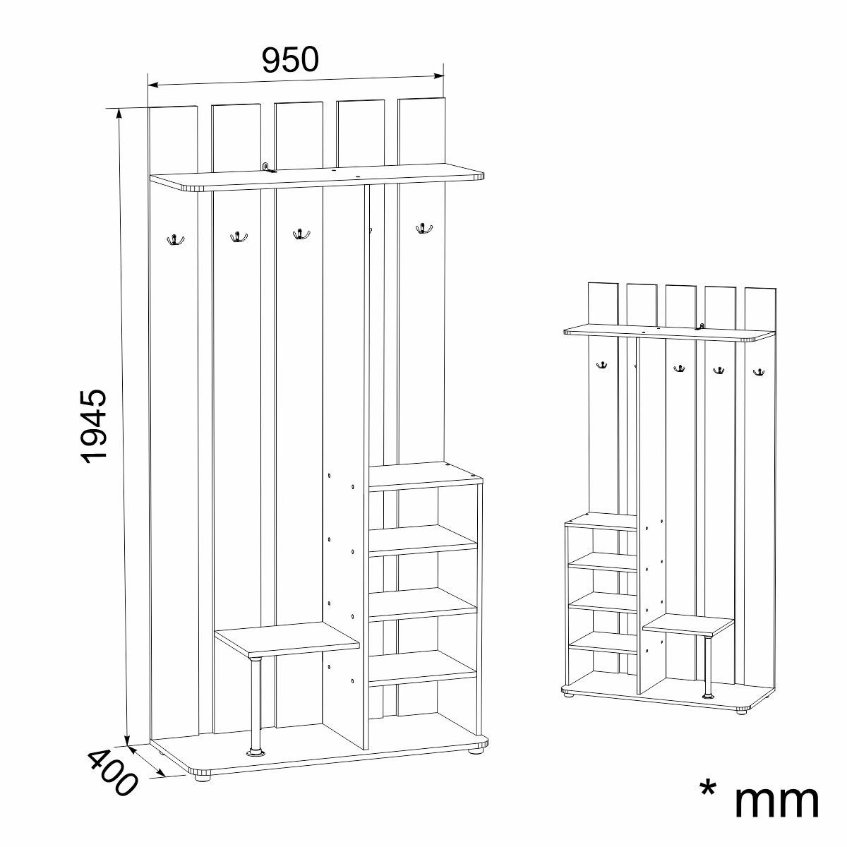высота, мм: | 1945 |
